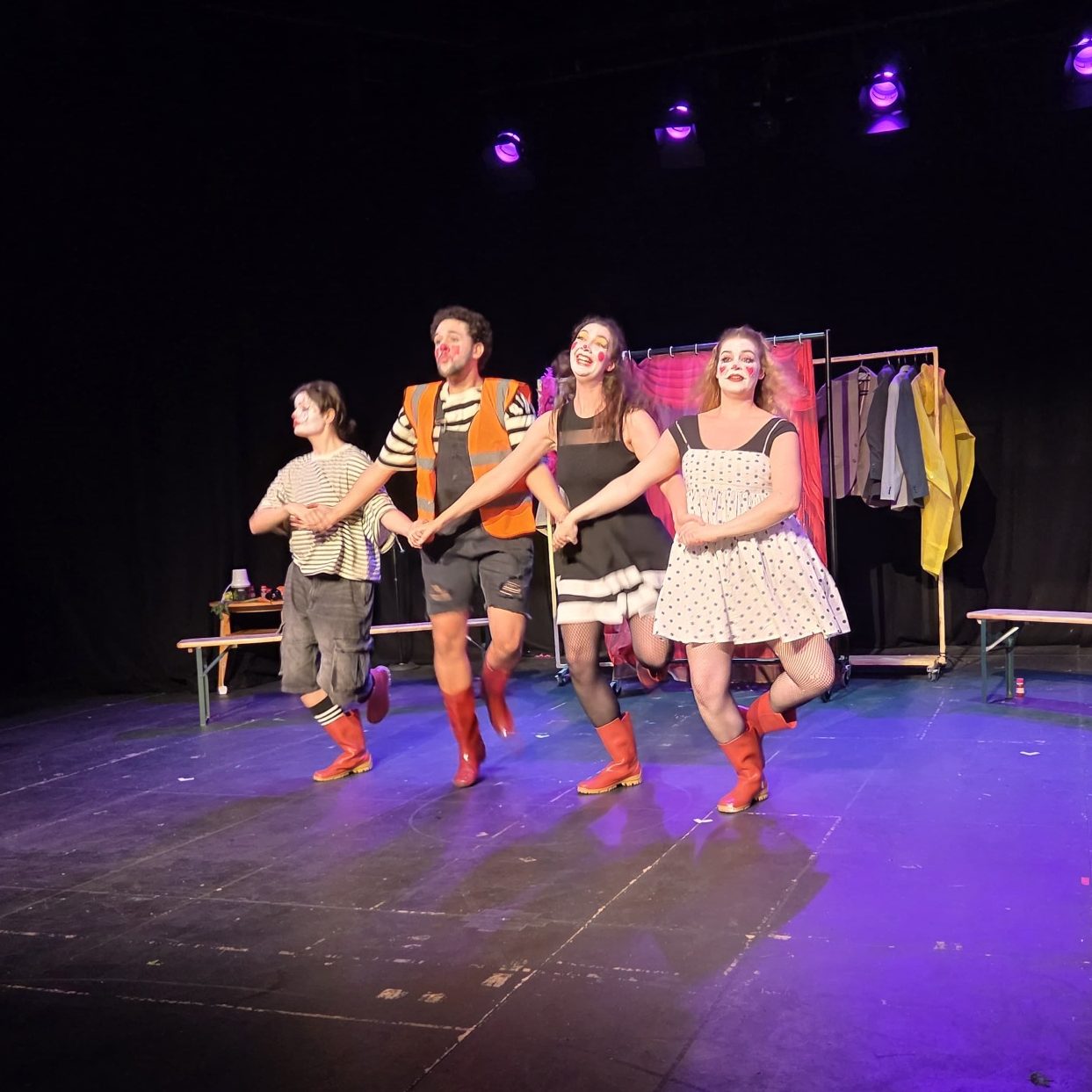 The Terribly Credible Definitely Edible Tale of the Town of Cropshire is an absurdist, metatheatrical fable about how populists seize and maintain power. Combining slapstick with an interrogation of political rhetoric to deliver biting satire, the show dissects the ways that bureaucracy and the language of crisis are weaponized to control communities.